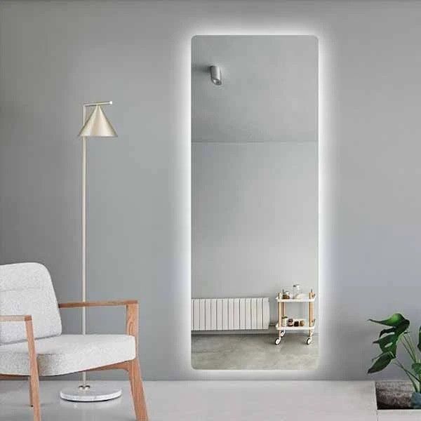 جنس آینه از 4 میل سوپرکلییر پلاس است و پشت آن کاملاً با ورق MDF پوشیده شده است؛ این طراحی منحصربهفرد باعث میشود که LEDهای داخلی بدون آسیب به آینه نصب و تعویض شوند و همچنین نصب آینه بسیار آسان شود. حاشیه و دور آینه با سنگ لول ابزار خورده که هم ایمنی لبهها را تأمین میکند و هم زیبایی آینه را دوچندان میکند.